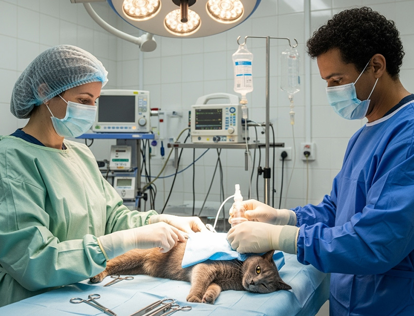 Equipe veterinária cirúrgica especializada